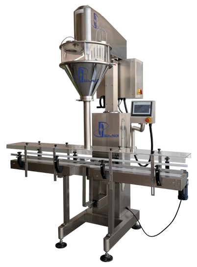 該機主要針對容易揚塵的超細粉末及高精度的包裝要求而開發設計,能完成瓶子自動定位和升降、充填及計量等工作,它由一臺稱重式螺桿充填機、一臺鏈板輸送帶及一個氣動定位裝置組成,根據裝在容器下面的重量傳感器給出的信號完成雙速充填、計量及升降等工作。適用于包裝添加劑、碳粉、滅火器干粉、其它超細粉末、及有高精度包裝要求的粉末等。