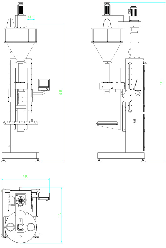 該機主要針對容易揚塵的超細粉末及高精度的包裝要求而開發(fā)設(shè)計,根據(jù)裝在容器下面的重量傳感器給出的信號完成雙速充填、計量及升降等工作,適用于包裝添加劑、碳粉、滅火器干粉、其它超細粉末、及有高精度包裝要求的粉末等。
