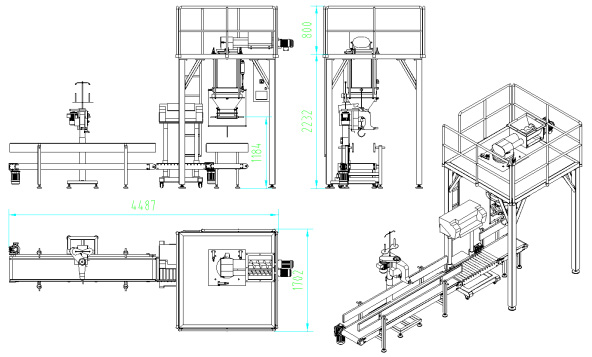 加配皮帶輸送機、縫包機、折邊機或熱合機等可以成為成套包裝系統。