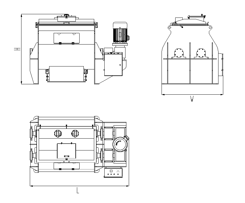 3、低殘留:槳葉與桶體間隙2-5mm,敞開式出料口