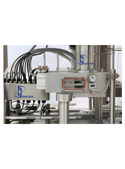 合理的給蓋方式,氣缸預先將蓋子送到封罐壓頭下方,封罐時罐子升高頂起蓋子到壓頭,保證100%準確對位,避免了預先給蓋到罐子上,罐子移位時蓋子偏移導致封罐劃痕的風險;