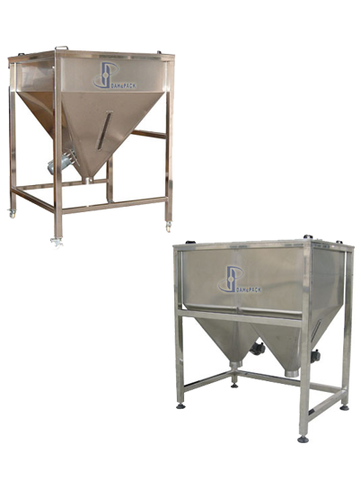 各種規格儲料倉,有圓形和方形;儲料容積:0.25 - 2m3(亦可定制其它規格);除電機外其余均為不銹鋼制成,物料接觸部分為304材質;根據實際需要,可選配攪抖器、篩網、料位器等多種附件